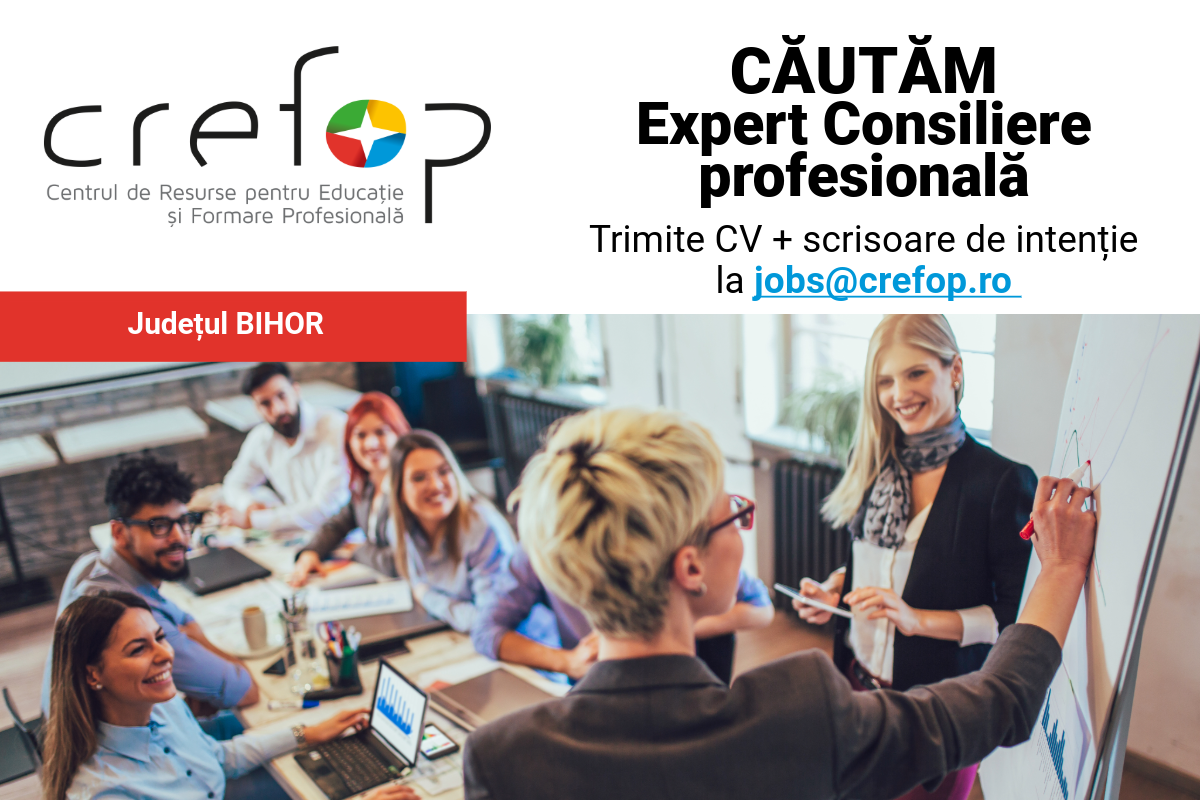 Cei interesați sunt rugați să transmită o scrisoare de intentie si CV, la adresa de e-mail: jobs@crefop.ro. Vă rugăm să mentionați la subiect Expert Consiliere – Bihor.