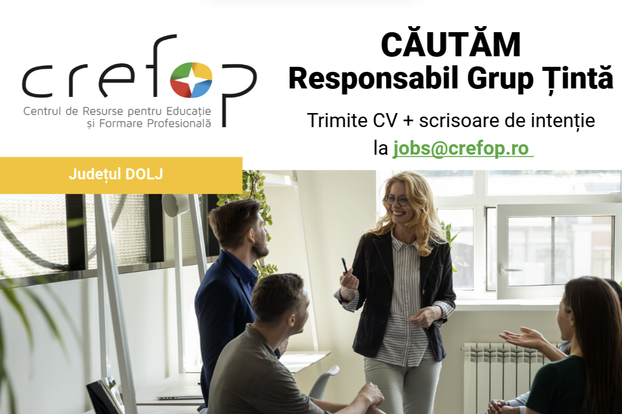 Fundația CREFOP- „Centrul de Resurse pentru Educație și Formare Profesională”- anagajează Responsabili Grup țintă (part time/ full time), în cadrul proiectelor dedicate tinerilor defavorizați din județul Dolj.